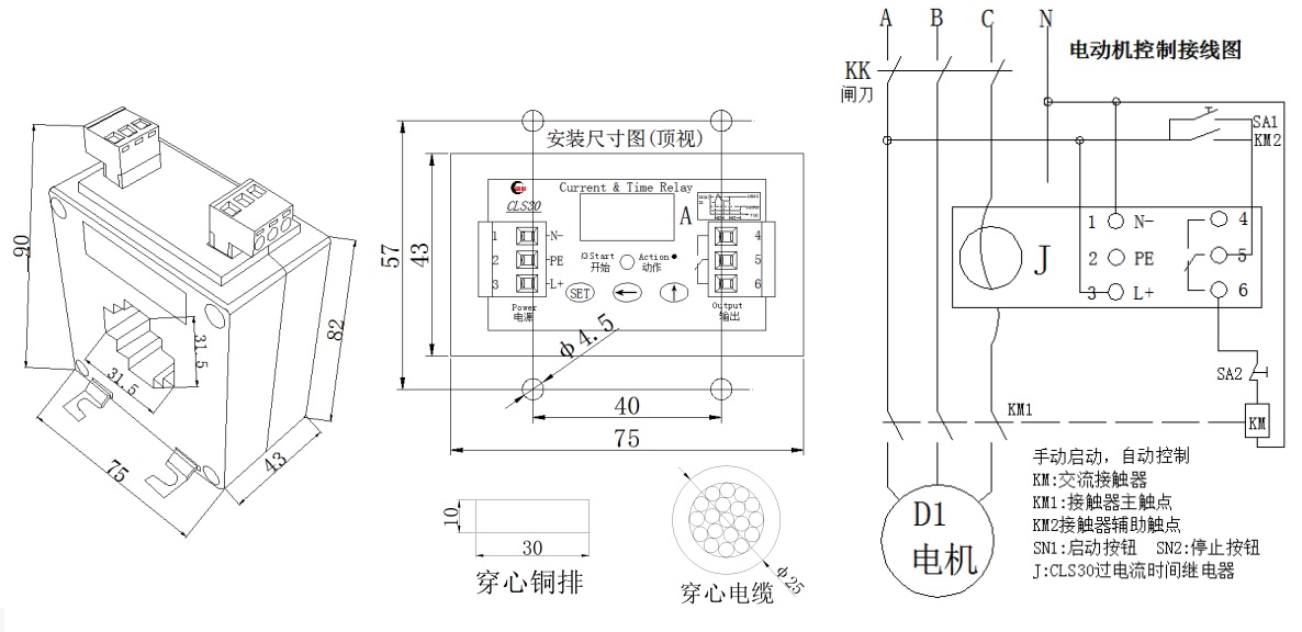 CLS30系列一體式過電流時(shí)間繼電器適用于發(fā)電廠、變電站用控保屏、高低壓開關(guān)柜、電動機(jī)、變壓器及各種測試設(shè)備,作為電流的精確測量,具備啟動延時(shí)閉鎖、延時(shí)動作、回差控制,數(shù)字直觀顯示,現(xiàn)場可編程等功能。電流穿心及控制一體式設(shè)計(jì),可省掉電流互感器,是一款一體式過電流控制保護(hù)等多功能繼電器。